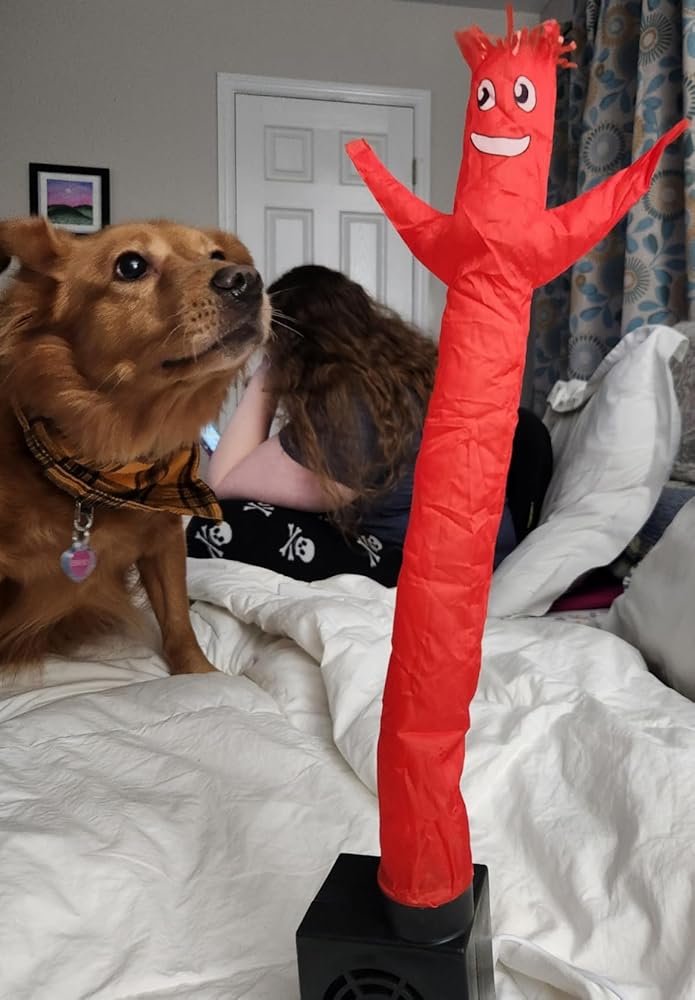 Watch as this little red guy waves its arms in a lively, cheerful posture! Its funny, unpredictable dance is an instant mood booster and a great way to break tension or redirect focus during a long day. Standing at 16.33 inches tall, this mini tube man is the perfect size for a desk, bookshelf, or countertop. It delivers maximum fun without taking up too much space. Crafted from high-quality materials, the inflatable guy has vivid, colorfast prints, and the included blower is built for durable performance.