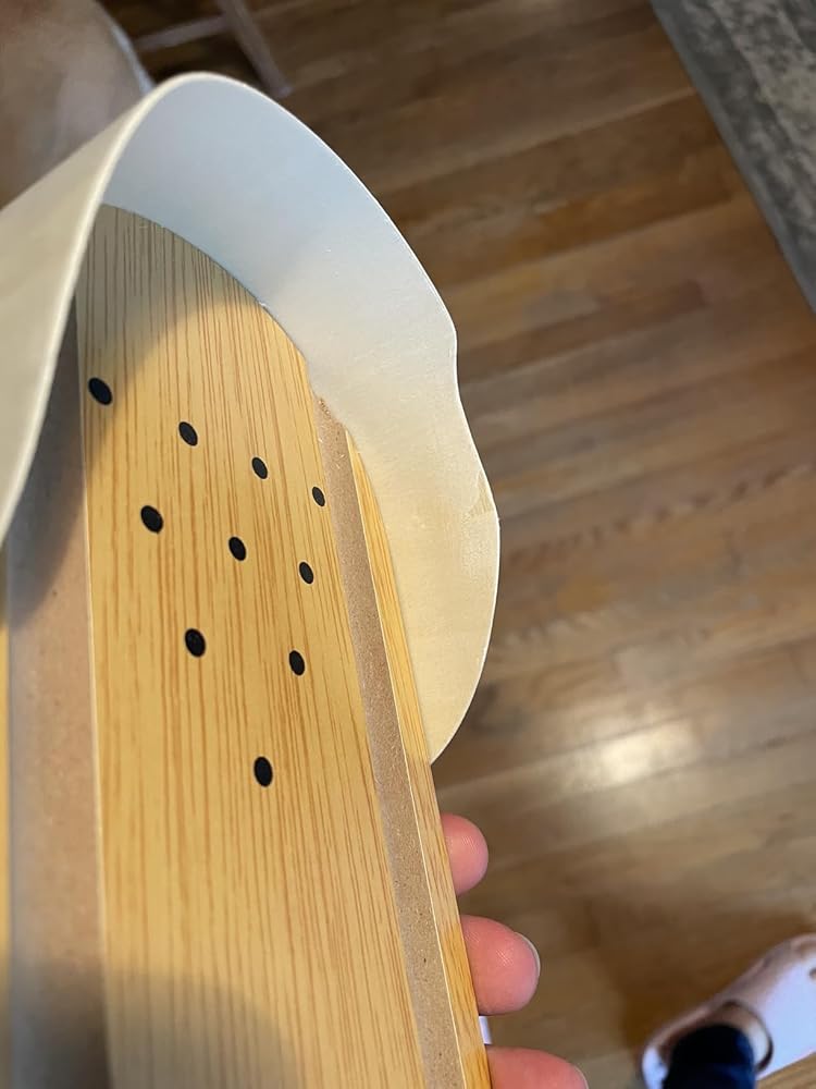 Cute little game. Love the size. Quality not great. The guard that keeps the pins from going everywhere is made from a very thin plywood like material. Within the first 10 minutes out of the box, toddler accidentally tripped over it and broke off a chunk of the pin guard, pictured. I sanded it down for safety so no one gets splinters. They definitely need to use a more chip resistant material for this. This is definitely going to be chipped easily with prolonged use. Would not recommend for a classroom or any heavy use setting. One hit to the floor and it is going to see some damage.